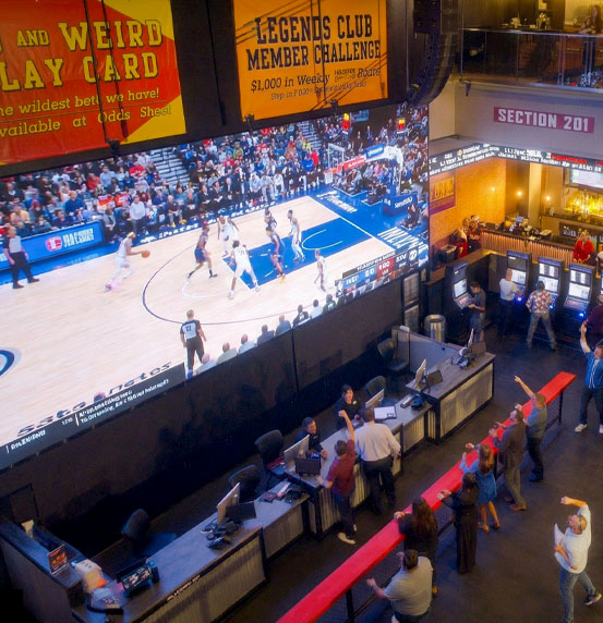 Prepárate para tu próxima jugada en Legends Sportsbook. Nuestra imponente pantalla HDTV de 38 pies te pone en el corazón de la acción de cada partido, todos los días de la semana. Haz tus apuestas y vive la emoción del torneo. Nuestra pantalla gigante te coloca al pie de la cancha para seguir la fiebre del juego.